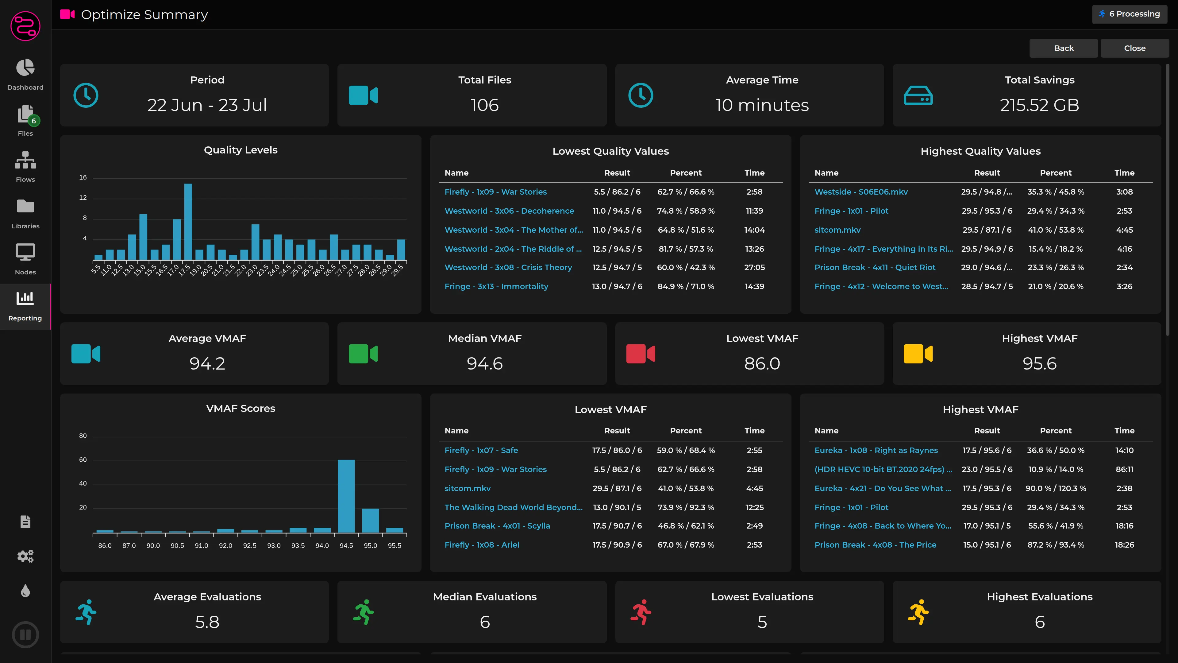 Build powerful automated flows for video transcoding, audio processing, images, ebooks, comics, and more. Supports AV1, HEVC, H.264 with hardware acceleration (Intel QSV, NVIDIA NVENC, AMD AMF, VAAPI, VideoToolbox on Mac) and VMAF-guided optimization. Automatically process videos: crop black bars, upscale/downscale, remove/convert audio tracks, remux containers, burn-in subtitles, or watermark content.